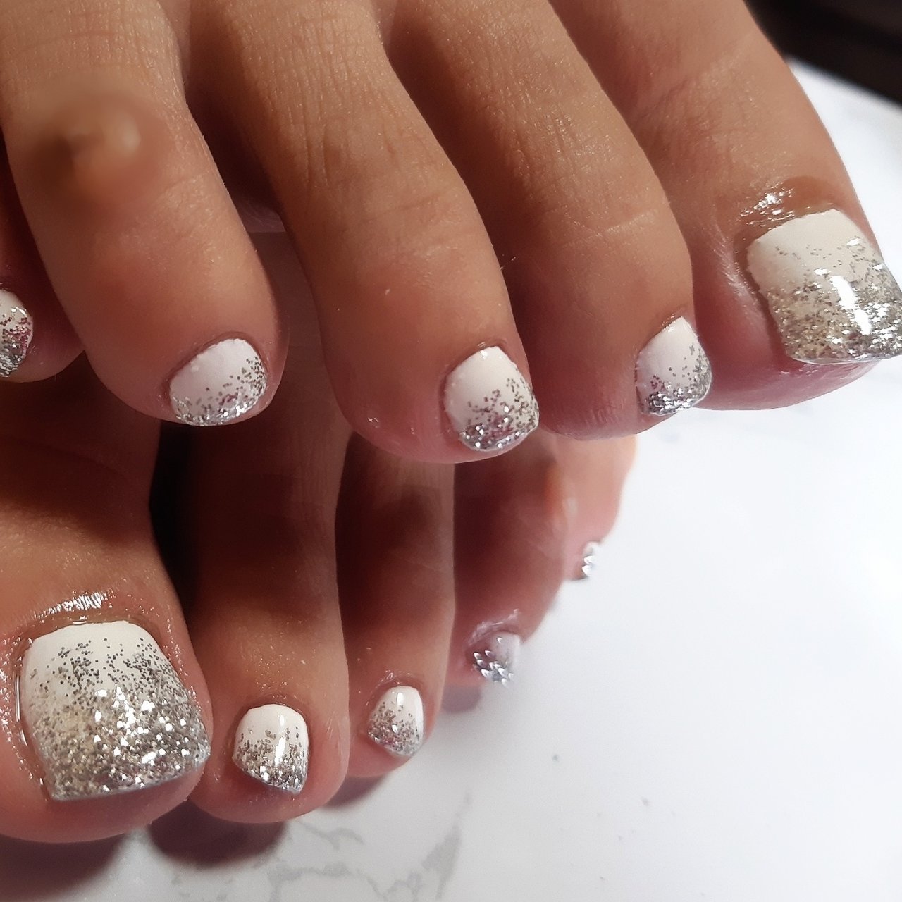 ギラッギラのラメグラデーションのフットネイル 婚活 ネイル 千葉駅5分のネイルサロン ヤミーネイルバー